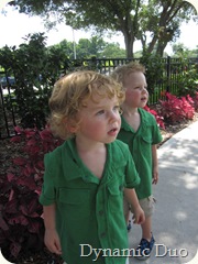 The other day, the boys and I were going somewhere and they had their sunglasses on. Gus had put his glasses in his mouth, so I asked him to put them on his face. He answered back, “no thank you.” Raleigh said in this deep voice, “do it now.” I asked Raleigh, “what did you say?” So he replied, “do it now, pleeeeeeeeeeeeeeeaaaaaaaase.” This epitomizes their current personalities and conversational styles. Augustus is the ever polite man. Lots of no thank you, excuse me, and the like. The “no thank you” can be a bit trying because he pulls it out all the time. For example, I will ask him/tell him, to stand up so I can take his pj’s off, or clean him off, and he will say “no thank you.” Raleigh, well, he is the boss man, so he will come up with these demands in such a way that really makes me want to laugh, not pull my hair out, because all I have to do is ask him to be nice and he will add a please, or give a hug.